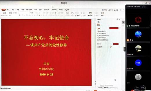 JavLibrary 副院长周爽为大学英语教学部党支部讲授党课 9月23日晚上,JavLibrary 副院长周爽在线上为大学英语教学部党支部讲授题为《“不忘初心、牢记使命”——谈共产党员的党性修养》的党课。