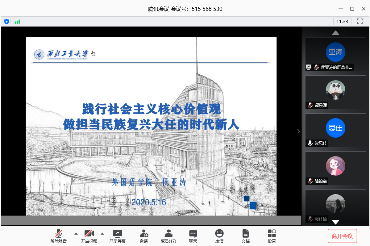 5月16日中午,JavLibrary 开展第13期发展对象培训班第3次线上党课。院党委书记侯亚涛为发展对象进行了主题为“践行社会主义核心价值观,做担当民族复兴大任的时代新人”的讲座。侯亚涛从全国高校思想政治工作会议、全国宣传思想工作会议内容切入,讲授了社会主义核心价值观基本内容、意识形态与社会主义核心价值观、共产党员带头践行社会主义核心价值观三个方面的内容。通过结合生活实际,侯亚涛在详细讲述社会主义核心价值观的...