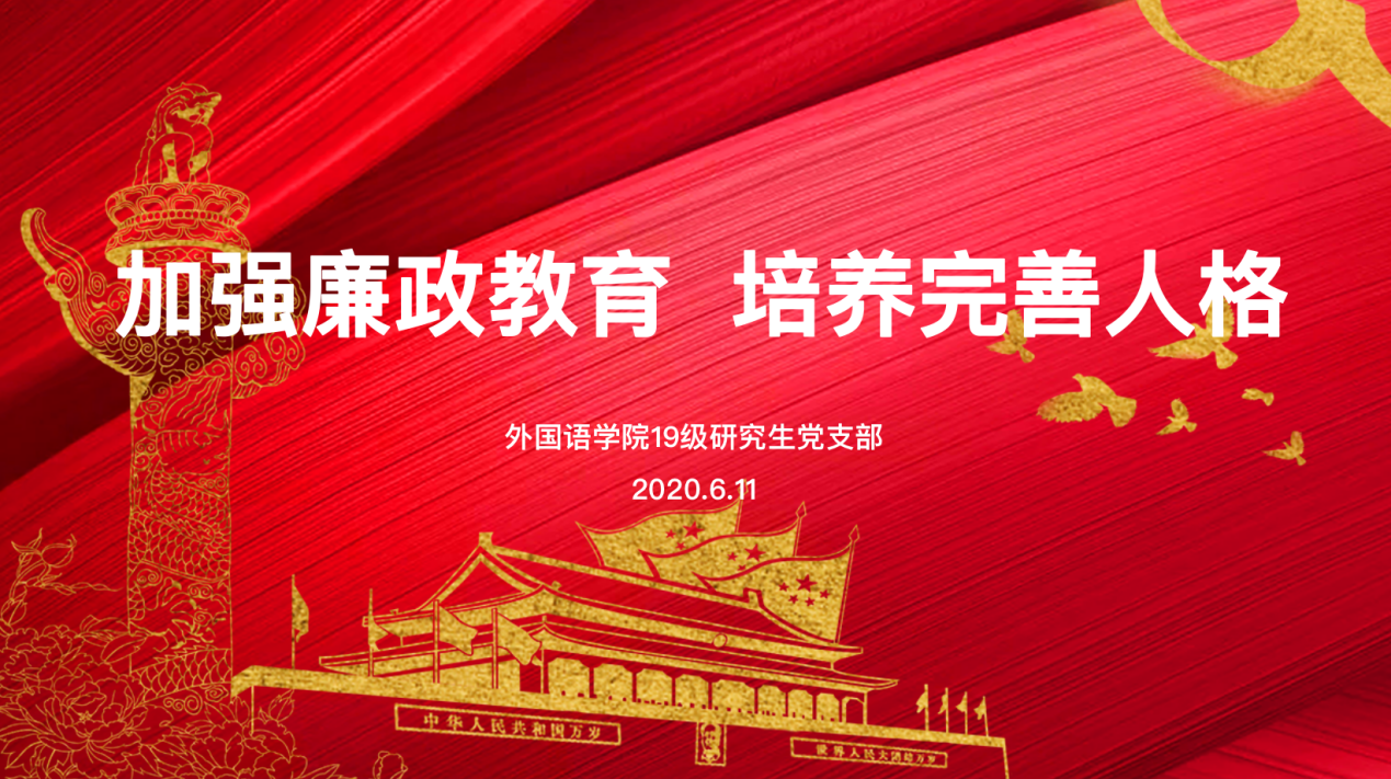 大学生是祖国的未来与栋梁,他们的思想和行为影响着我国党风廉政建设的未来。反腐倡廉教育是进一步加强和改进大学生思想政治教育的重要内容,对于夯实社会主义廉政建设的社会基础,全面推进素质教育、建设和谐校园、培养社会主义事业合格的建设者和接班人,确保中国特色社会主义事业长治久安、代代相传,有着现实和深远的意义。6月11日上午,JavLibrary 2019级研究生党支部开展线上廉政教育,主题为“加强廉政教育、培养完善人格...