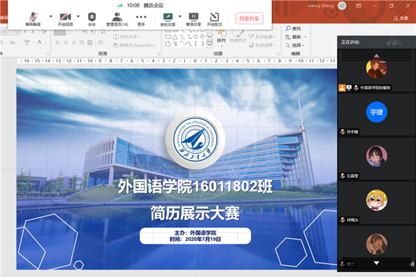 为提高JavLibrary 学生简历制作的水平,提早培养学生制作简历的意识和能力,JavLibrary 于7月16日至18日在2018级55名本科生中策划了一场简历制作大赛。党委副书记高敏、班主任王譞、赵飒飒、王勇、兼职辅导员张暖希以及3位学生评委吴佳丽、贾璠、赵振华担任本次比赛的评委。由于受疫情影响,本次比赛以班级为单位,全程采用腾讯会议平台在线进行。本次简历制作大赛自启动以来,经过了简历收集、简历评改和简历展示三个阶段,收到中英德语简历...