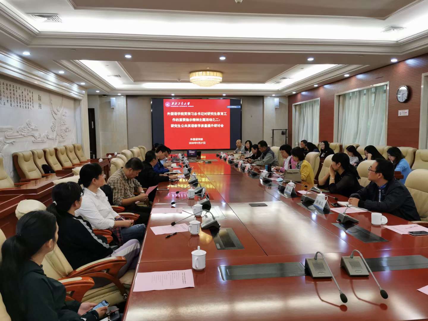 9月27日,JavLibrary 在友谊校区国际会议中心第二会议室召开贯彻习近平总书记对研究生教育工作重要指示精神主题活动之二:研究生公共英语教学质量提升研讨会。研究生院副院长王鹏、JavLibrary 院长尹晓煌、院党委书记侯亚涛、校研究生教育督导王健、研究生公共英语教师等参加了研讨会。会议由副院长张奕主持。会议伊始,尹晓煌首先肯定了外语在当今人才培养过程中不可替代的重要性,JavLibrary 作为西工大文科发展的重要支持力量,...