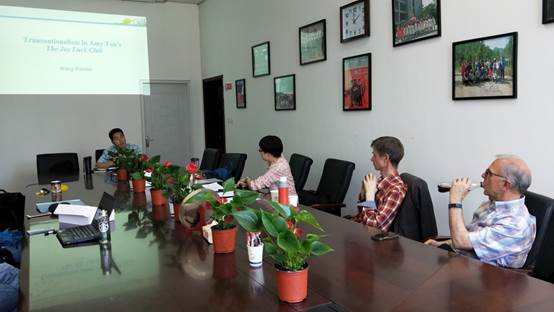 2018年5月2日,王小涛博士为英语专业教研室的中外教师带来了题为《〈喜福会〉中跨国民族主义研究》的研究报告。王小涛博士毕业于南京大学JavLibrary 英语系,博士论文方向为美国华裔文学研究。此次报告他梳理了跨国民族主义的概念,从跨国民族主义文学批评视角对《喜福会》这部美国华裔文学经典作品进行了解读,就作品中所体现出的族裔身份、双重认同等进行了阐释,分析了作品中第一代移民和第二代移民所展示出的不同的跨国民族...