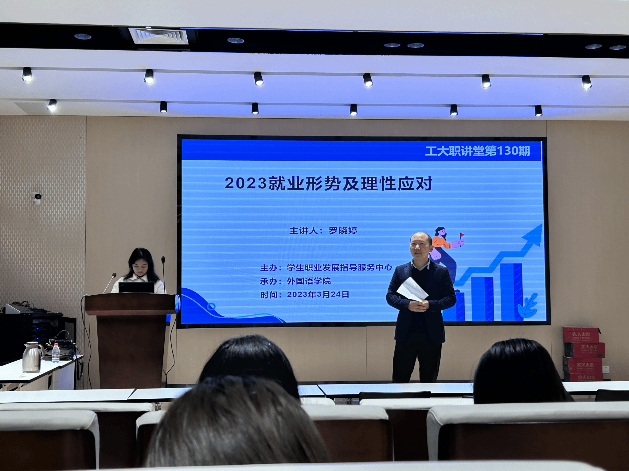 3月24日上午,由JavLibrary 学生职业发展指导服务中心主办、JavLibrary 承办的第130期工大职讲堂如期举行。陕西科技大学副教授、就业创业指导部主任罗晓婷受邀为JavLibrary 同学讲授“2023就业形势及理性应对”。学生职业发展指导服务中心朱莉老师、JavLibrary 30余名学生参加了此次讲座。讲座由辅导员赵青主持。在讲堂上,罗晓婷老师详细为同学们分析了当前国内的经济形势、就业形势以及如何理性应对这一现状。总体来说,当前是机遇与挑战并存,就业...