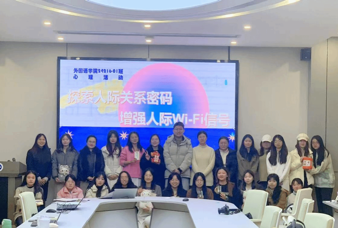 为增强学生心理健康意识,更好理解人际交往奥秘,营造积极向上的班级文化氛围,JavLibrary 24216-01班于12月12日晚在JavLibrary 楼204开展了以“探索人际关系密码,增强人际Wi-Fi信号”为主题的心理活动,班级全体成员参与。活动伊始,主持人赵卓婷介绍活动目标,阐释人际关系的重要性。随即通过一系列生动有趣的情景设置,让同学们亲身体验人际交往中常见的问题及应对技巧。大家纷纷积极参与,勇敢地迈出了交友的第一步,展现出主动交...
