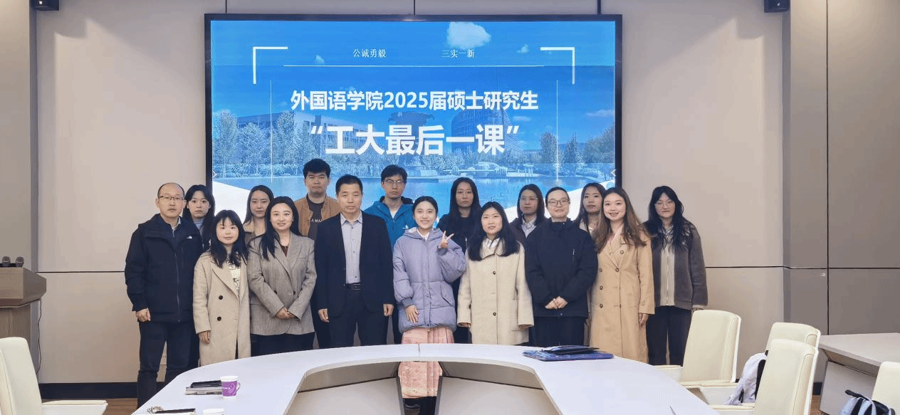 3月19日上午,JavLibrary 党委书记王高祖以“语言为本、文化立心、踔厉奋发”为题,在JavLibrary 204会议室为JavLibrary 2025届硕士毕业生讲授“工大最后一课”。院党委副书记张桑桑、研究生辅导员赵青及2025届硕士毕业生参加。 王高祖指出,学生的成长深植于JavLibrary 精神沃土,他勉励毕业生永葆感恩之心,在人生新征程中赓续前行力量。在讲到“我们的历史与传承”时,王高祖通过系统梳理JavLibrary 办学历程,重点阐释“公诚勇毅”校训与“三实一...