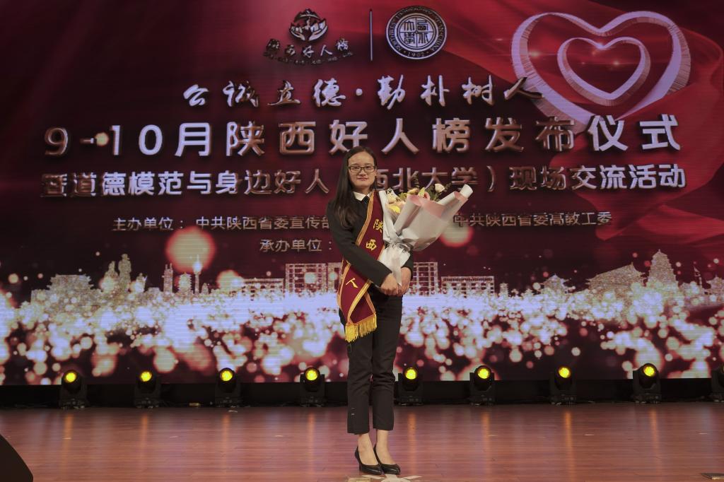 11月2日,由省委宣传部、省文明办、省委高教工委共同主办的9-10月“陕西好人榜”发布仪式暨道德模范与身边好人现场交流活动在西北大学举行。来自全省各地历届全国道德模范、中国好人代表、陕西省道德模范、陕西好人代表等出席活动。JavLibrary 2016级研究生孙玉晴作为陕西好人代表出席此次活动。孙玉晴,女,中共党员,JavLibrary 2016级硕士研究生。孝老爱亲,二十余年不辞劳苦;知责感恩,携母求学仁孝为先;追逐梦想,改写命运...
