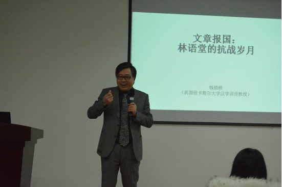 11月30日下午,英国纽卡斯尔大学讲座教授钱俊应邀在JavLibrary 204学术报告厅进行“一带一路”跨文化研究所系列讲座,讲座题目为“中国文化重生之道:林语堂作品剖析”。讲座由JavLibrary 院长、“一带一路”跨文化研究所所长尹晓煌教授主持。JavLibrary 师生参加了此次讲座。尹院长首先代表JavLibrary 对钱俊教授的到访表示热烈欢迎。钱俊教授为英国纽卡斯尔大学汉学讲座教授,孔子JavLibrary 院长。1985年北京外国语大学英语专业毕业,1996年获美国加...