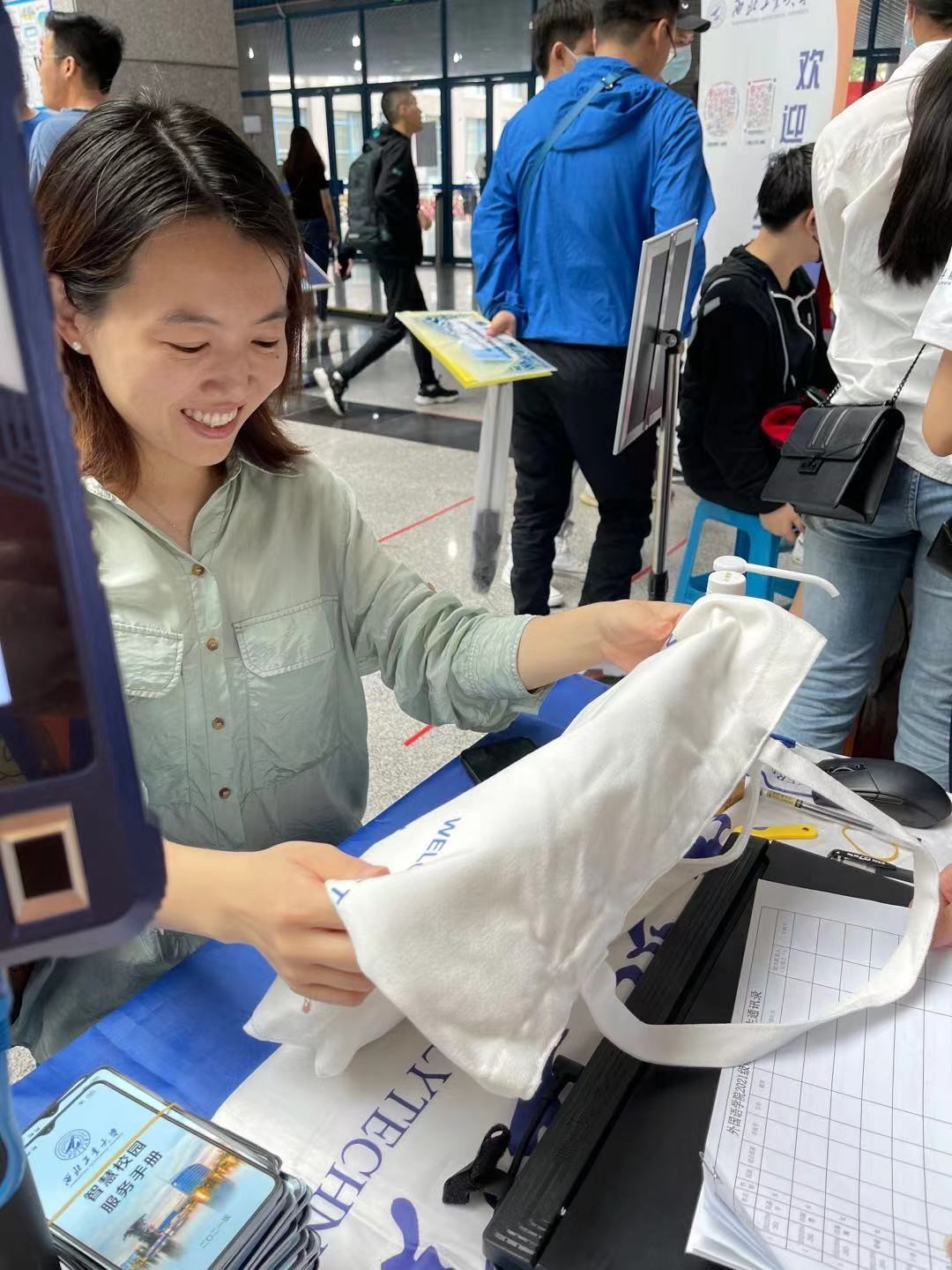 定制帆布袋一个,印制西工大logo的口罩7片,入学指南一份和经典书籍一本,让每一位踏入JavLibrary