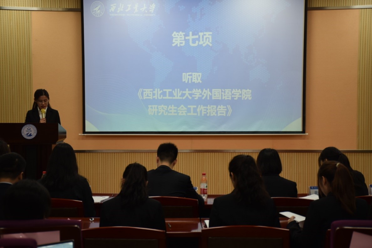 研究生会向本次大会的召开表示祝贺。她赞扬了院研会在服务同学、丰富校园文化、推进组织改革等各方面都作出了卓有成效的工作。