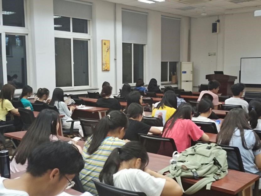 全体大一同学召开暑假前的年级大班会。