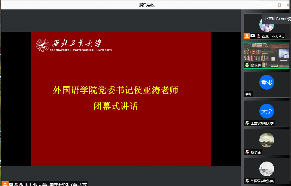 6日下午的闭幕式上,6位营员主动发言,从活动的组织、对西工大的情怀、学术讲座的深度、奖助体系的完备、校友的优秀、对老师的感谢等方面分享了自己的感受。最后,院党委书记侯亚涛讲话,他对本次夏令营活动的圆满举办表示祝贺,对过程中全体老师的辛勤组织和付出表示感谢,期望同学们在短短的两天时间内有所收获,对自己的成长有所帮助,也期待大家能够早日加入西工大JavLibrary