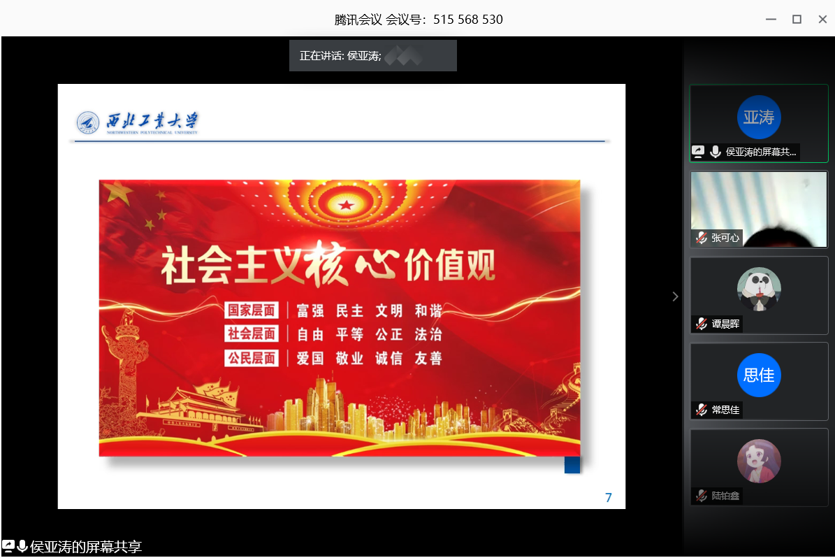 开展第13期发展对象培训班第3次线上党课。院党委书记侯亚涛为发展对象进行了主题为“践行社会主义核心价值观,做担当民族复兴大任的时代新人”的讲座。