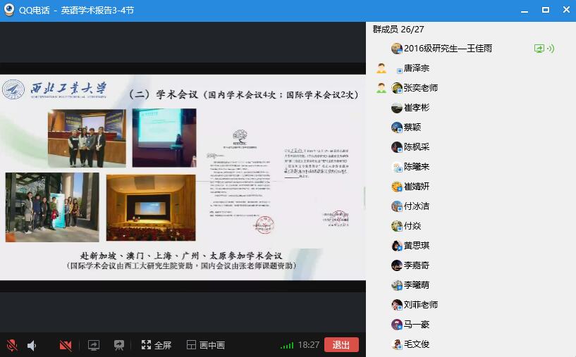 2016级外国语言学及应用语言学研究生王佳雨在线分享了自己在西工大读研的感悟,可概括为“滋养”,“求真”和“定力”。她还从导师指导、JavLibrary