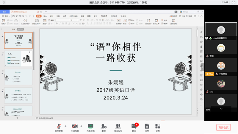 3月24日,岳蕾从基础知识积累、论文发表、拓展科研生活和提高综合素质四个方面给出如何增强学术能力的建议。朱媛媛分享了资格证书考试、国际组织实习和申请国外读博的经验。