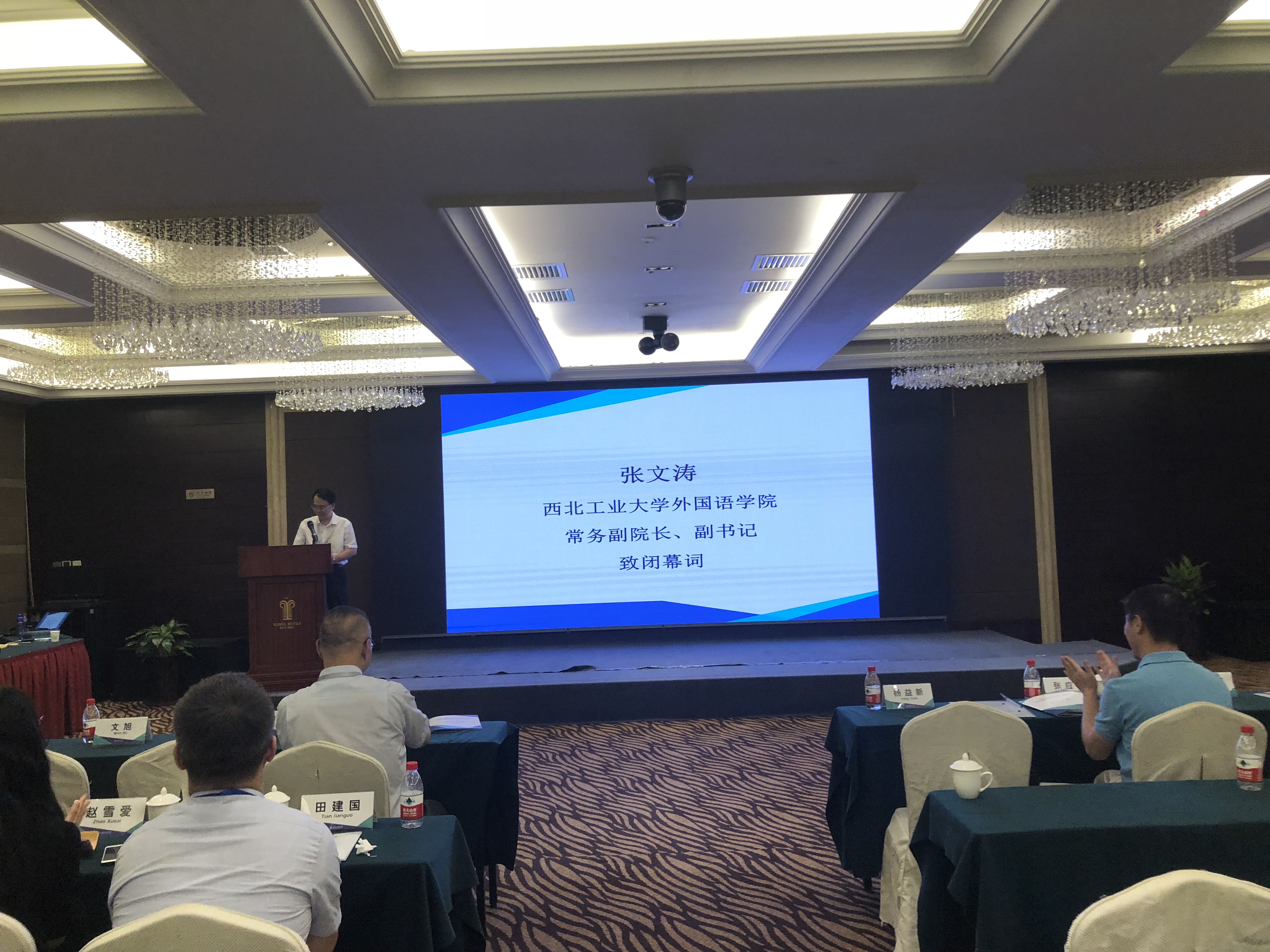 常务副院长、副书记张文涛致会议闭幕辞,宣布大会圆满成功,感谢与会人员的大力支持,希望在座的外语界专家、学者为实现新时代大学外语教育所肩负的历史使命而不断创新、不懈奋斗。
