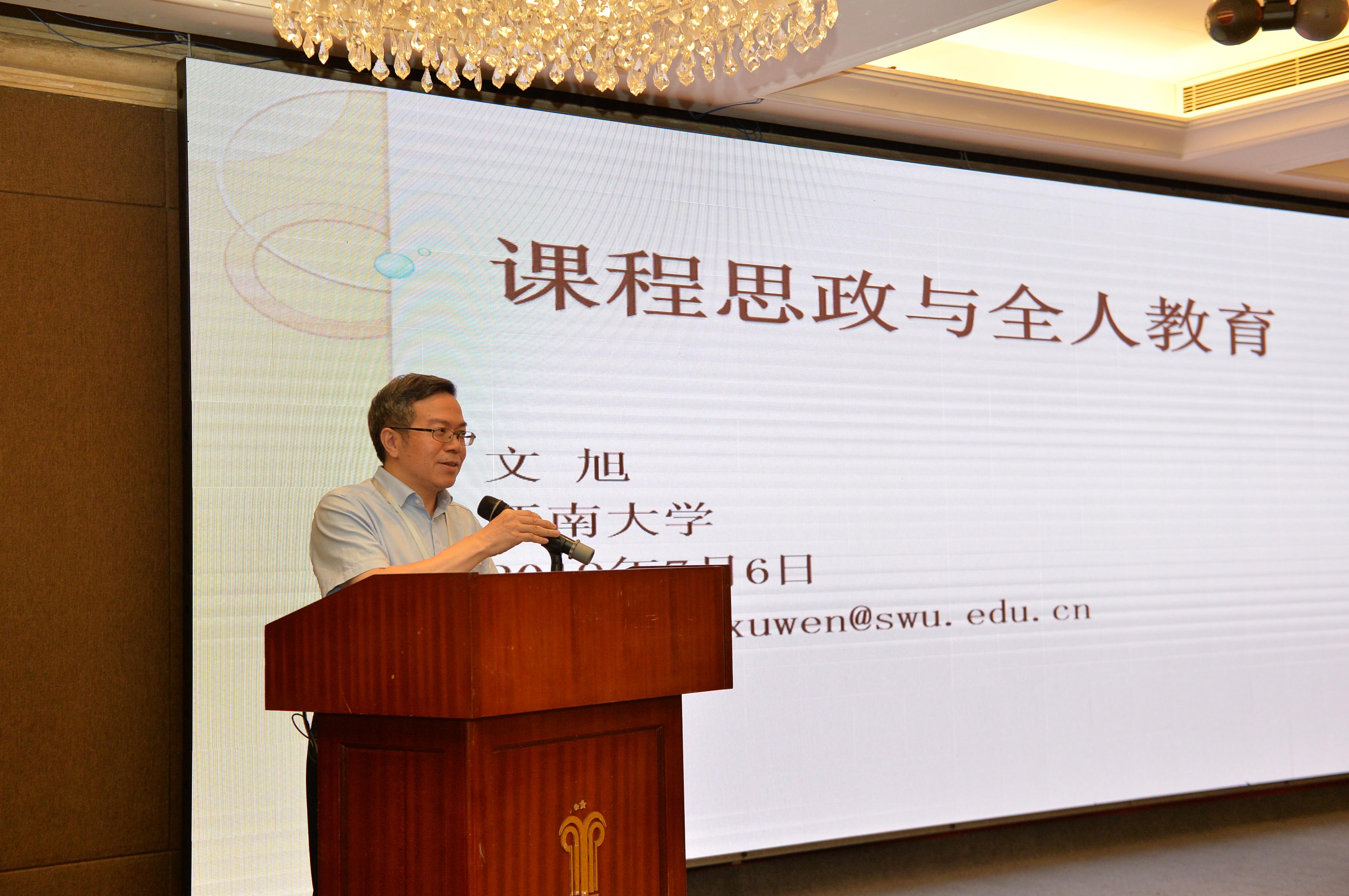 开幕式上,尹晓煌教授、杨益新教授分别致辞,对与会者表示热烈欢迎。之后,特邀嘉宾王守仁教授与文旭教授先后进行了主旨发言。王守仁教授从时代大背景出发,阐述了新形势下外语专业学生需要具备的能力。文旭教授从“融合·融通”的角度,阐述了大学外语教学国际化和当代化的新要求,并从“课程思政”角度阐述了大学外语教育用社会主义核心价值观引领人才培养的德育路径。两位学者的发言字字玑珠、掷地有声,使与会人员既领略到了大家学者风范,更感受到了至真教育情怀,赢得现场听众经久不息的掌声。