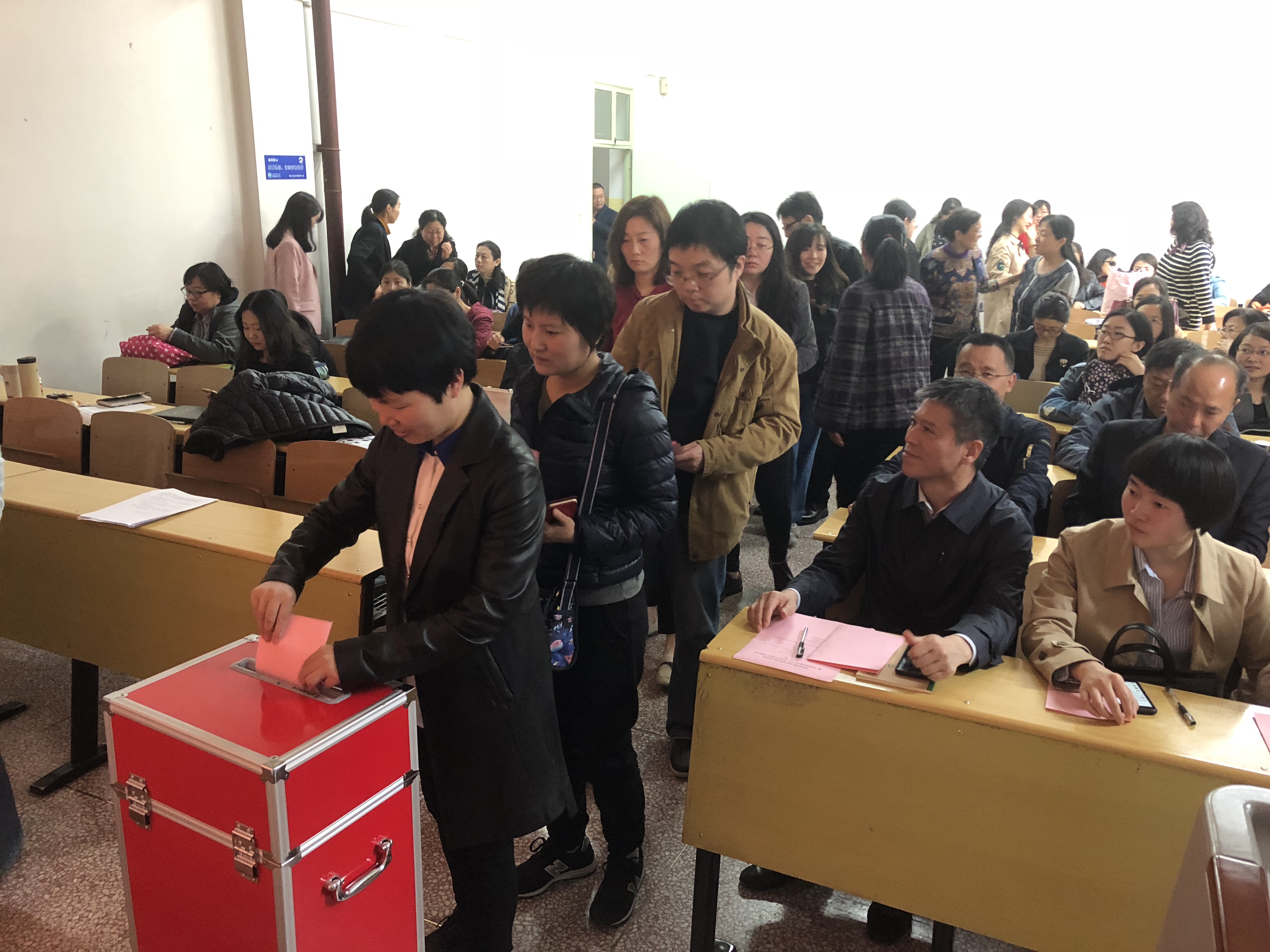 常务副院长、副书记张文涛宣读了选举办法和选举注意事项,会议通过了监票人、计票人。此次大会在校工会的指导下,经过前期的认真准备和充分酝酿,推选出7位工会委员候选人,通过差额选举的方式无记名投票选举出新一届工会委员会。每位参会教职工都庄严地投上了自己的一票,经过选举,产生了JavLibrary
