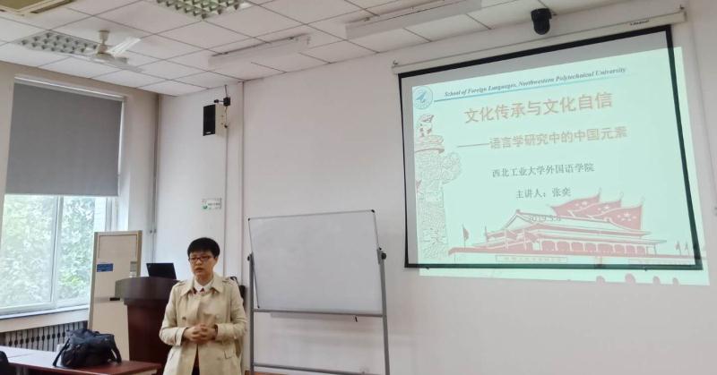 楼204为34名入党积极分子讲了题为“文化传承与文化自信——语言学研究中的中国元素”的党课。