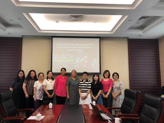接着,Sharon Harvey博士做了题为“Intercultural Communication in Language Teacher Education”的讲座。Sharon Harvey博士首先首先对跨文化交际的理论框架进行了阐述,以跨文化交际能力为例解释了新西兰多语种(Multilingual)语言教育政策,并引用Micheal Byam的观点,认为跨文化交际能力要求学生获得跨文化交际方面的知识/技巧、态度并能客观评价跨文化意识。 随后Sharon博士介绍了跨文化交际能力的衡量量表,提出语言教师首先应具备跨文化的交际能力。