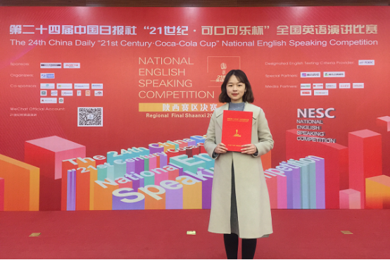 中国日报社“21世纪·可口可乐杯”全国英语演讲比赛陕西省决赛中,王曼玲力压群雄,夺得总冠军,并将代表我省参加2019年3月的全国总决赛。