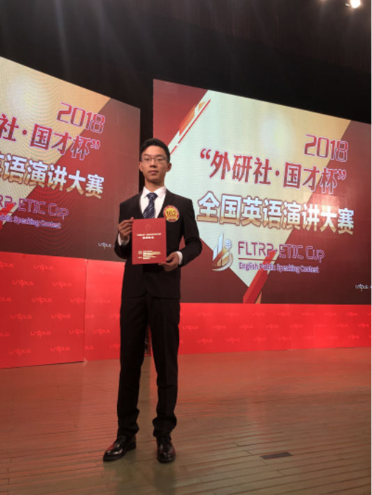 “外研社·国才杯”全国英语演讲大赛中,周靖皓作为陕西省特等奖进入全国总决赛并晋级第二轮,获得国家级二等奖。