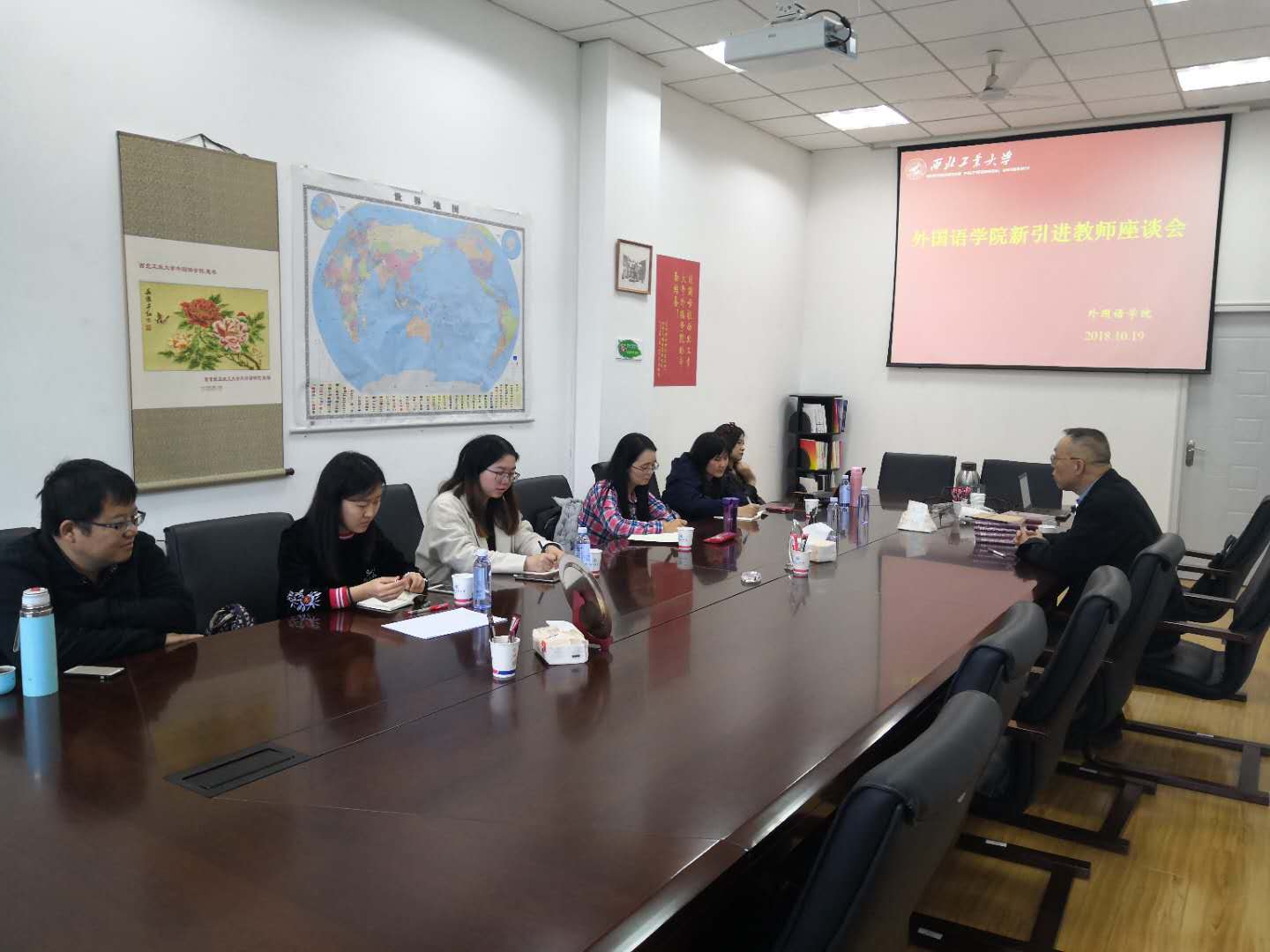 现有的科研环境与资源共享、图书资料与数据库、校园文化建设与传承等方面提出了诸多有益的建议和意见。尹院长结合自己的学习工作经历,向新进教师传授了如何克服文化差异、尽快融入团队的宝贵经验。