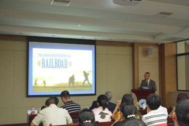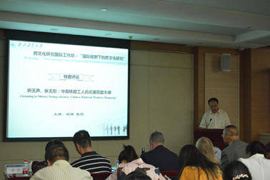 Shelley F. Fishkin教授通过展示其研究团队历时多年,多方搜集到的大量珍贵图文资料,向我们描述了上上个世纪上万名华裔劳工在美国铁路工程中的生活与劳作图景,肯定了他们对美国近现代文明进程的重要贡献,追踪了他们子孙后裔一百多年来的足迹,同时也介绍了由她领导的横跨太平洋两岸的历史考古学庞大研究团队以及系列学术活动。随后,尹晓煌教授和赵硕教授分别以“不同的情感:华人文学作品中的美国东西大铁路”和“听无声、察无形:华裔铁路工人的北美筑路丰碑”为题做了特邀评论,高度肯定并赞赏了Shelley教授在该研究领域的杰出贡献。
