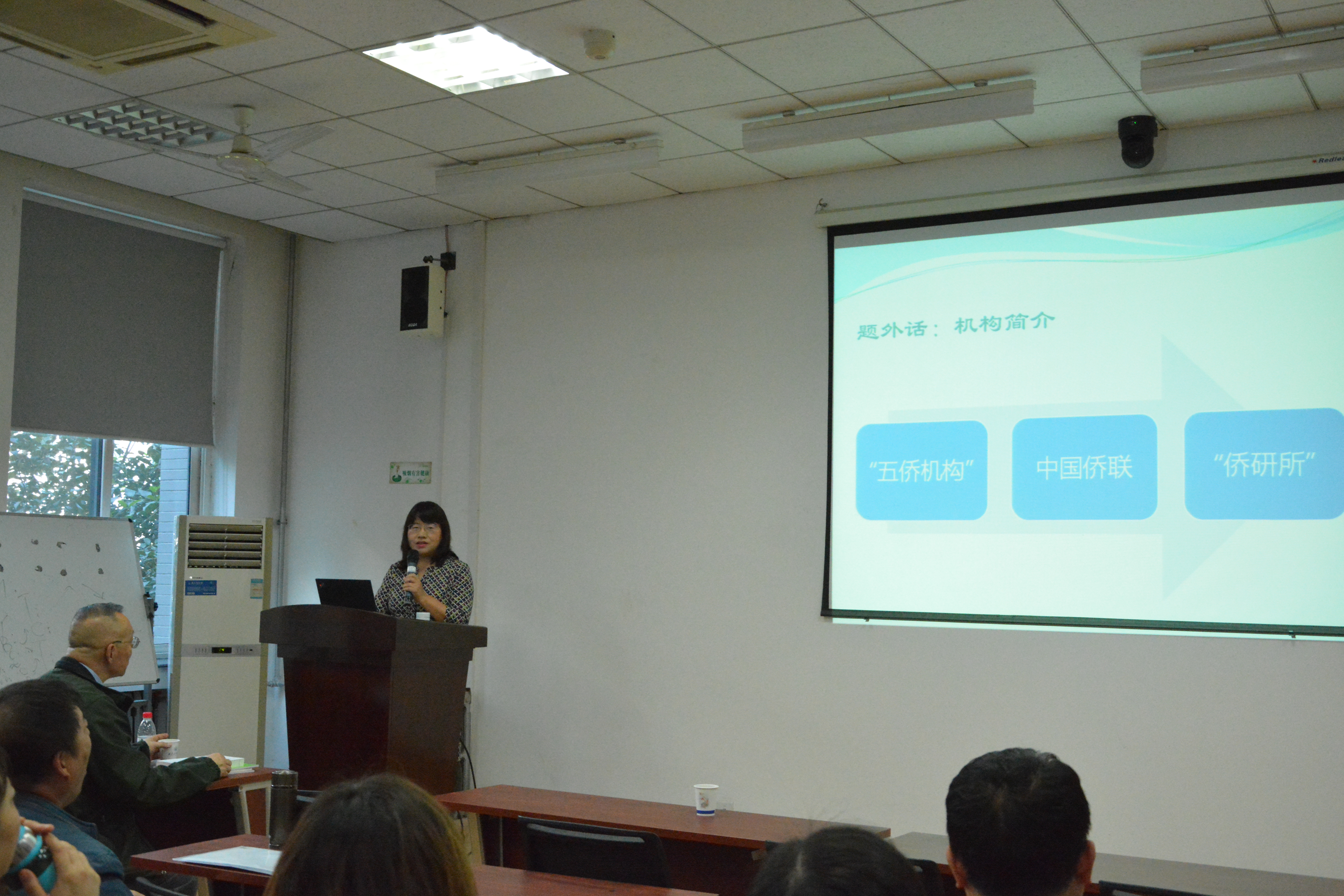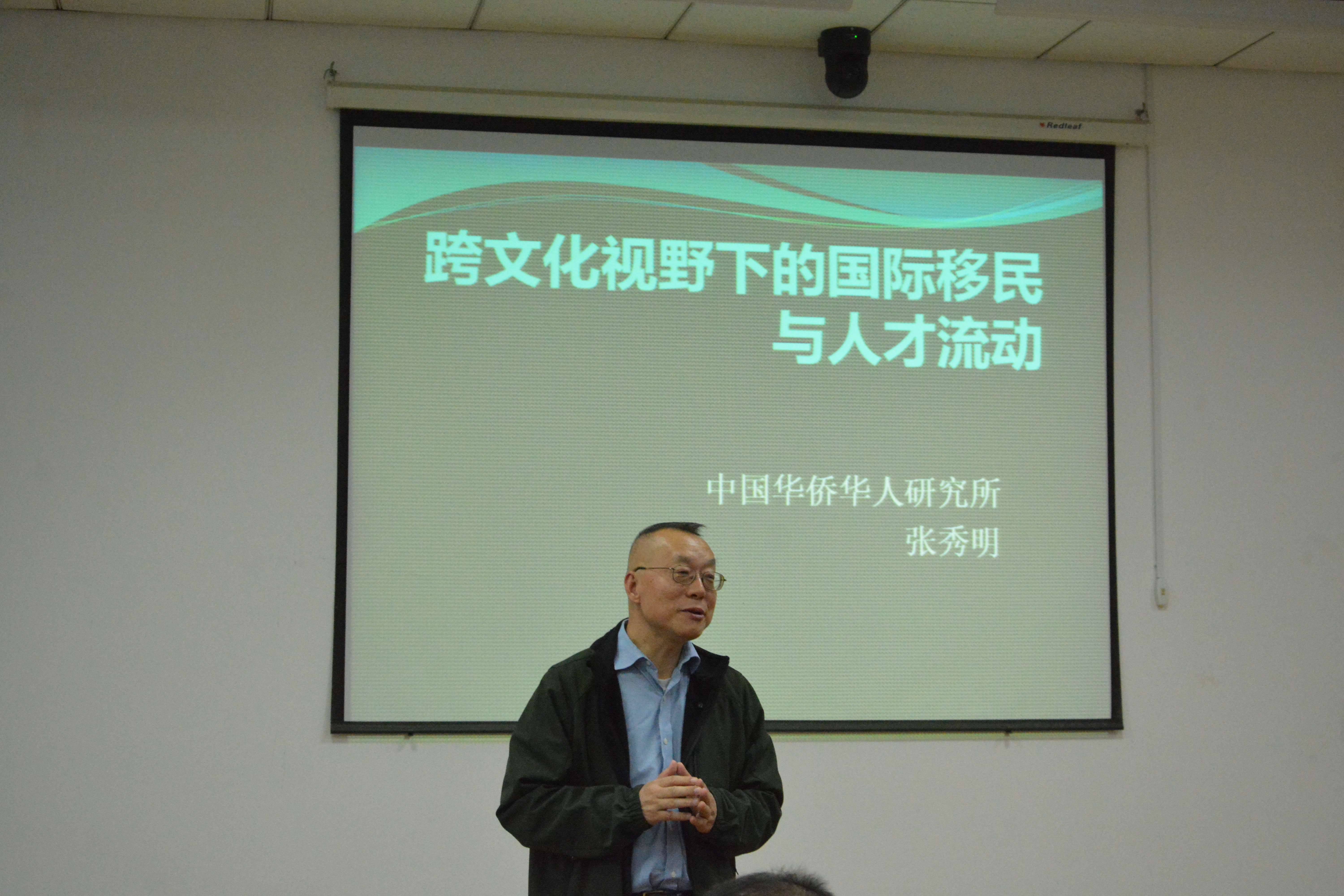 张秀明秘书长首先向在座师生简要介绍了中国华侨华人研究所和《华侨华人历史研究》杂志情况,随后以“谁是跨文化交流的主体”为切入点,以美国、以色列、印度、菲律宾、爱尔兰、新加坡等国家为例说明国际移民是普遍现象,从国际移民的现状与特点、改革开放以来中国的国际移民及跨文化交流、中国正成为越来越有吸引力的移民目的国、改革开放以来的留学事业与人才流动等四个方面介绍了国际移民与华侨华人的相关情况。