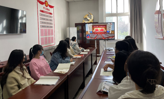 组织院领导班子、党委理论学习中心组成员及广大师生分别在智慧教室、党员活动室、会议室等集体收看党的二十大开幕会。随着大会开幕,收看直播的师生全体起立,高唱国歌。开幕会历时近2小时,师生全程认真聆听,习近平总书记的报告激荡群情、催人奋进。其他师生则通过电视、广播、网络等多种形式收看收听开幕会盛况。