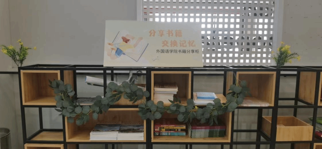 二楼书柜处设立了书籍分享柜,该书籍分享柜在本次毕业活动结束后作为固定场地供外院同学们分享书籍。爱心赠书活动号召毕业生们向学弟学妹捐献一本书,分享宝贵的经验与精神财富,也希望能够通过此次活动,激发全体学生读书的兴趣,营造良好的学术氛围,既避免书籍浪费,也是发扬学生们奉献精神,是爱心与激励的传递。