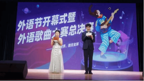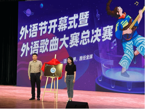 马婷婷与王高祖共同为外语节徽标揭幕,标志着首次外语节开幕式暨外语歌曲大赛总决赛正式拉开序幕。