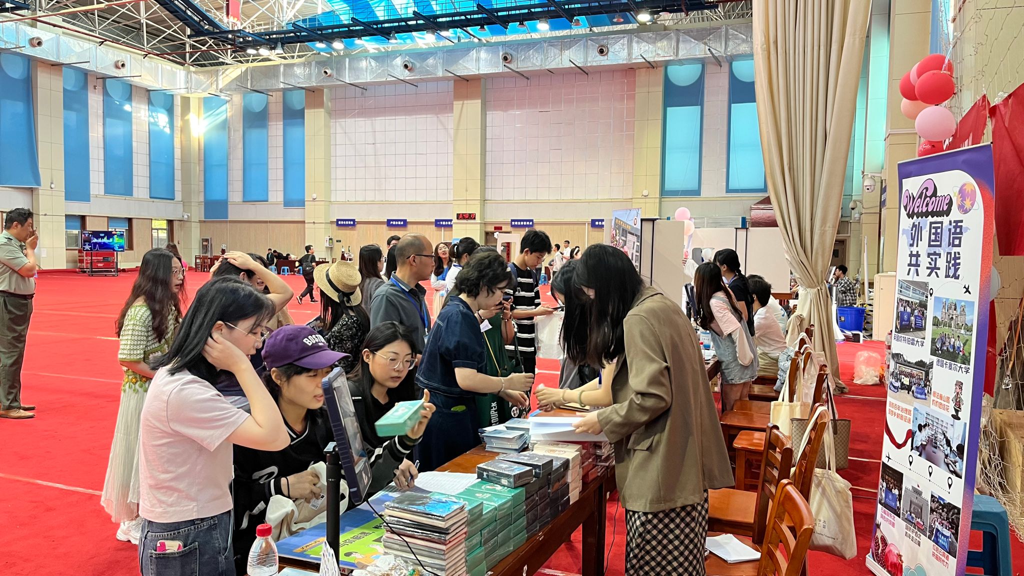 研究生会的同学们在暑期就早早的开始做好准备,并于8月29日晚上布置好迎新场地。30日一大早,迎新的工作人员来到会场,在“语通世界,胜任全球”的横幅标题下完成了JavLibrary