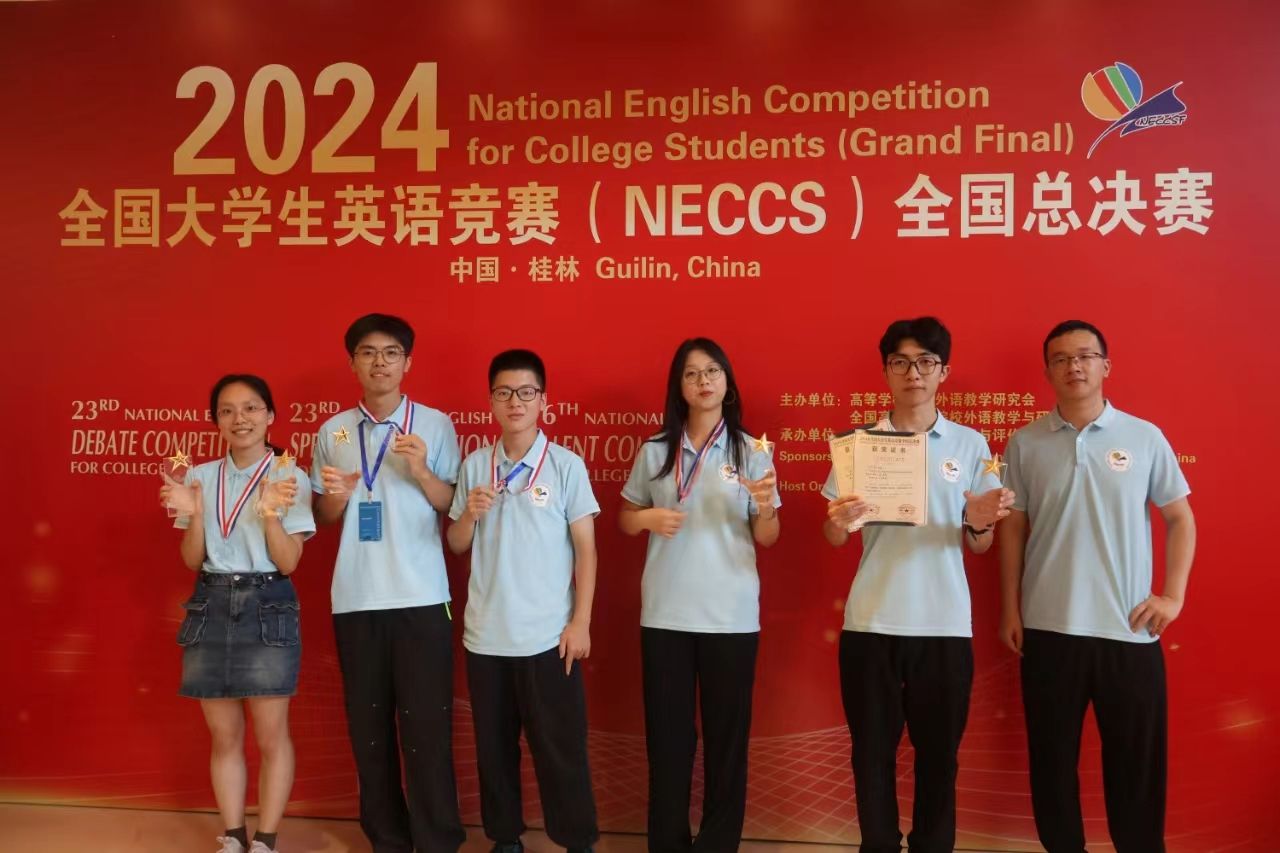 的宋天牧等7位同学脱颖而出,晋级全国总决赛。全国总决赛是 2024 年全国大学生英语竞赛(NECCS)的一项重要后续活动,旨在进一步鼓励在初、决赛中取得优异成绩的大学生,提高其英语听说交流能力,培养其自立、创新能力及团结协作精神。