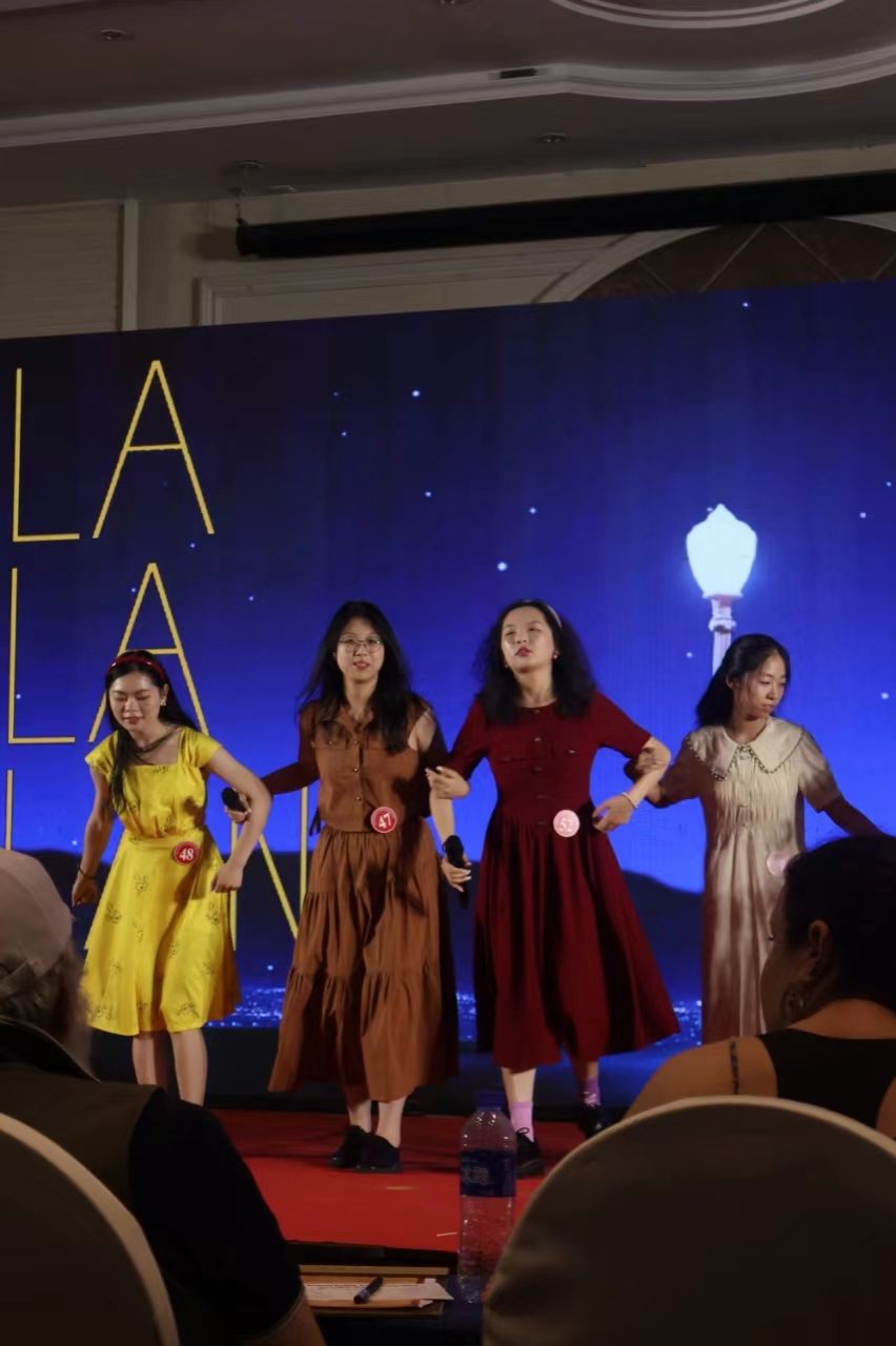 选手刘佳乐(左二)参加总决赛英语风采大赛电影配音表演