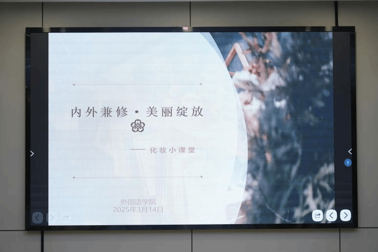 楼204会议室举办“内外兼修·美丽绽放”系列活动,特邀专业化妆师吉俊莹,以“化妆”为主题进行培训。活动共吸引近30名学生参加。