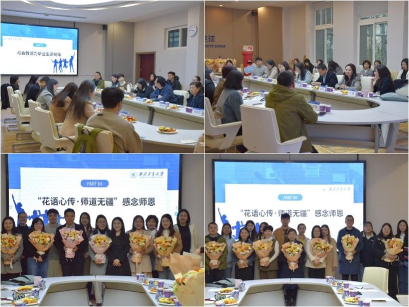 的教诲,努力为社会贡献力量。老师们的寄语充满了深情与智慧,在场毕业生深受感动。在温馨的氛围中,毕业生们手捧鲜花,向辛勤培育自己的老师献上最诚挚的感谢。一束束鲜花不仅是对老师辛勤付出的肯定,更是师生深厚情谊的珍贵见证。