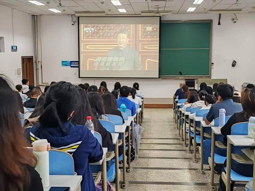 206报告厅、教学西楼A306观看阅兵仪式线上直播,共同见证庄严时刻,凝聚奋进力量。