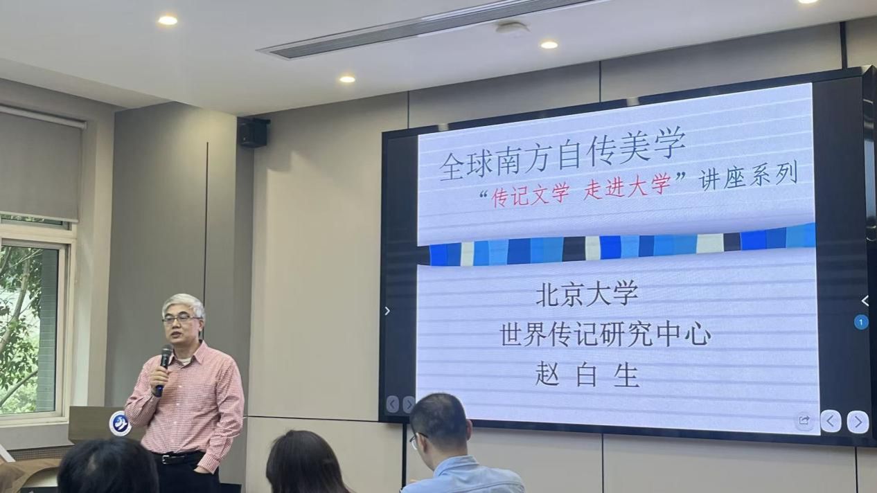,为师生带来一场题为“全球南方自传美学—兼论区域研究范式创新”的精彩讲座。本次讲座由副院长王晓丹主持,40余名师生参加。