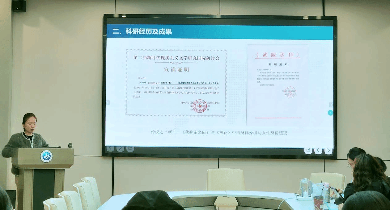 2024级硕士研究生刘一丁分享国际会议参会经验。她从会议筛选技巧入手,讲解如何根据研究方向匹配高价值国际会议,再到论文投稿的格式规范、审稿反馈应对策略,最后延伸至会议现场的学术交流技巧,让在场同学明确国际会议不仅是成果展示平台,更是拓展学术视野、链接同行资源的重要渠道。