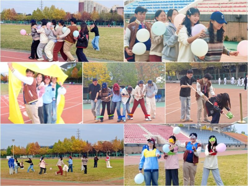 随着主持人宣布活动开始,各队伍迅速投入到趣味项目中。“n人n足”项目里,队员们肩并肩、脚绑脚,齐声喊着“一二、一二”的口号稳步向前,大家在挑战中感受到温暖与信任;“无敌风火轮”“运送乒乓球”项目,各队成员分工协作,“心往一处想、劲往一处使”;“踩气球”“撕名牌”项目则将现场气氛推向高潮,同学们在奔跑与互动中释放活力,平日里的学业压力随欢快的笑声一同消散,尽情享受运动带来的畅快;“盲人摸象”环节,蒙眼的队员在队友清晰的指引下避开障碍、完成任务,每一次精准的指令都凝聚着彼此的信任,让大家深刻理解沟通在团队合作中的关键作用;“瓜熟蒂落”“多人运送气球”等项目同样精彩纷呈,各队伍在竞争中收获快乐,在协作中增进友谊。