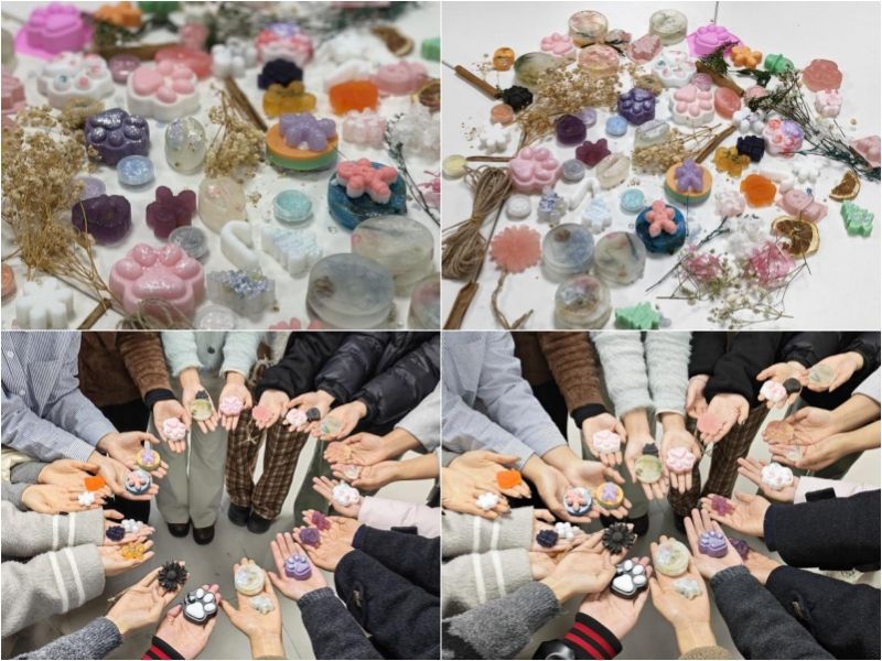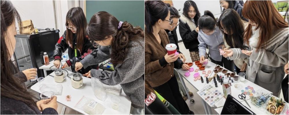 研究生会精心准备了天然皂基、植物精油、安全色素与多种造型模具,并设置操作区、分享区与展示区,营造出温馨、安全的创作环境。活动开始前,工作人员详细讲解材料特性与操作规范,引导同学们共同约定“专注当下、安全第一、享受过程”,为心灵之旅拉开序幕。