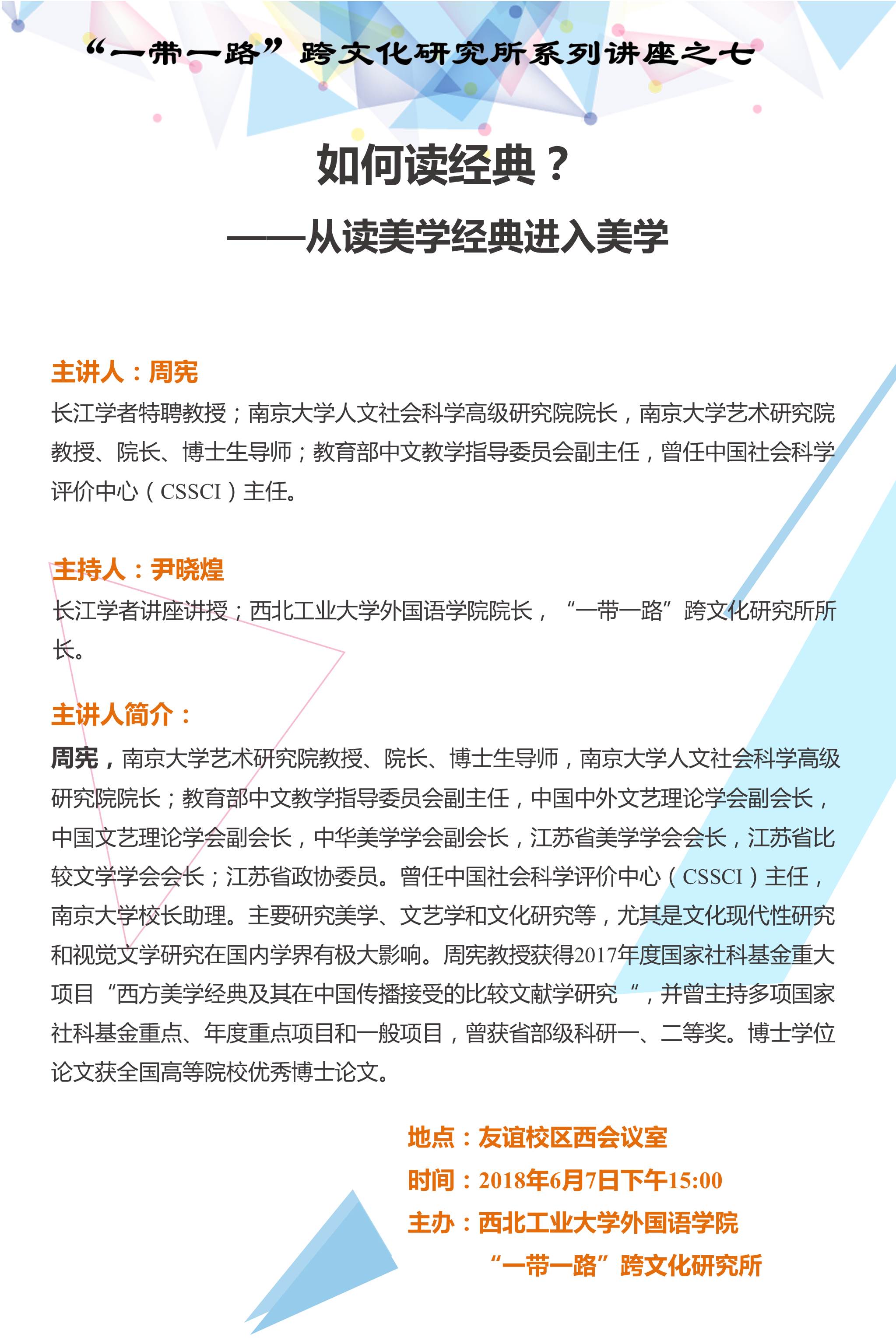 “一带一路”跨文化研究所系列讲座通知