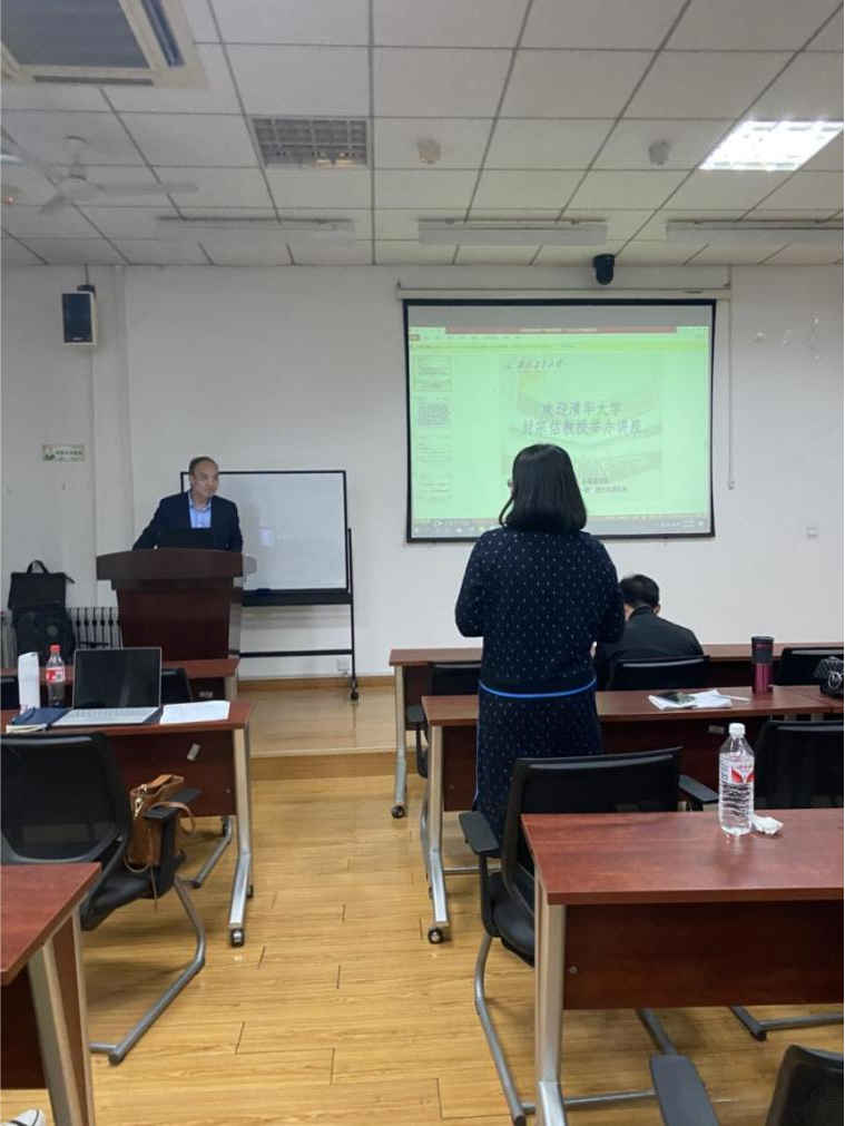 师生进行讲座表示欢迎,并对封教授作了简要介绍。封宗信,清华大学外文系长聘教授、博士生导师,“语言-文化-社会”学科群带头人。北京大学博士、北京外国语大学博士后、哈佛大学和剑桥大学访问学者、加州大学伯克利校区富布赖特研究学(2009-2010),2005年入选“教育部新世纪优秀人才支持计划”,2018年获选清华大学第十六届“良师益友”。研究方向包括语言学理论、语用学、文体学、叙事学、翻译研究。代表作见于Semiotica(国际符号学研究会会刊)、Neohelicon(国际比较文学权威期刊)、Language and Literature(国际诗学与语言学协会会刊)、Narrative (国际叙事研究会会刊)、European Review、《外语教学与研究》、《国外文学》、《中国翻译》等。国外原创论文被A&HCI或SSCI检索收录6篇,在欧美出版的专题研究及其他国际会议论文集上发表英文论文20余篇。